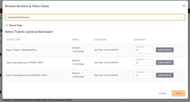 - Select your quantity of tickets and click done to finish your purchase.